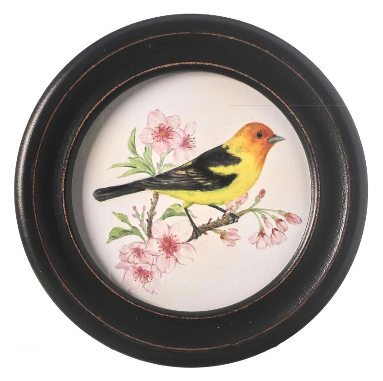 - 10″ Wood Round Frame Bird Print Y/O/B