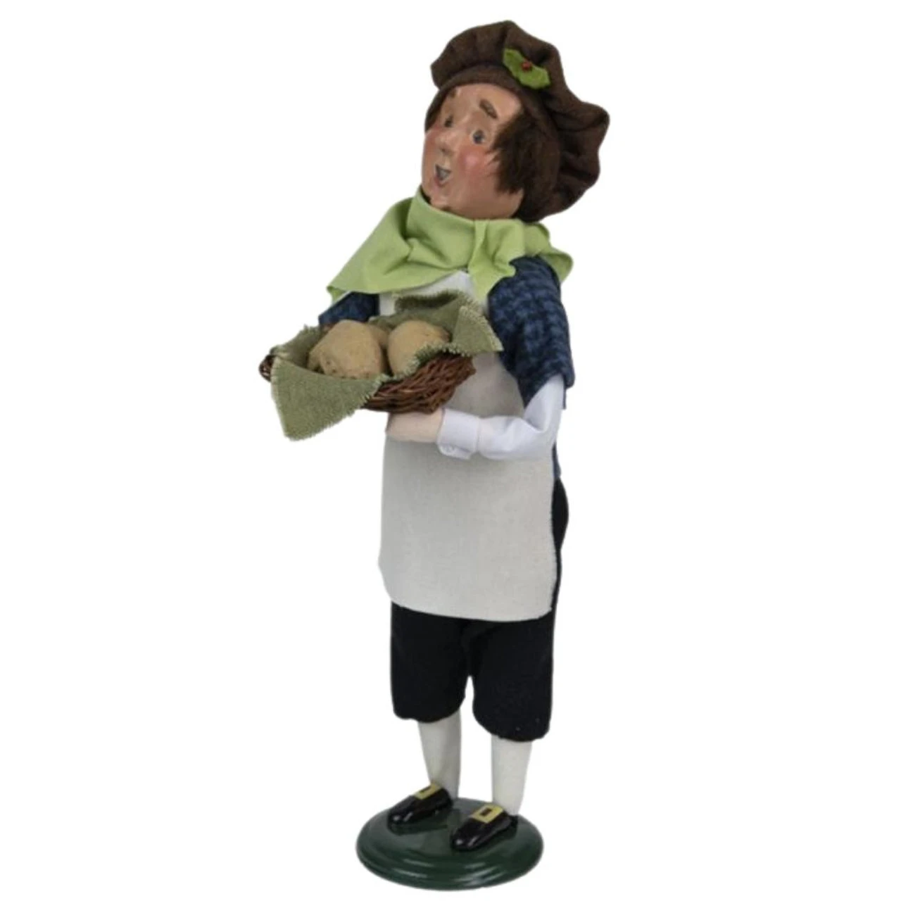 Experience a touch of London with the limited edition Byers’ Choice Cries of London Man With Meat Pies Caroler. Standing at 13 inches tall, this characterful caroler carries a basket of freshly baked meat pies, a symbolic nod to the vibrant life on London’s streets. Decked out in a lucky apron, the authenticity of this piece emanates from every detail. Continually in demand since Joyce’s first ‘Apple Lady’ in 1991, each piece in this series is limited to one year of production, making them sought-after collectibles. Delve into the enchanting world of Byers’ Choice and bring home a piece of history!