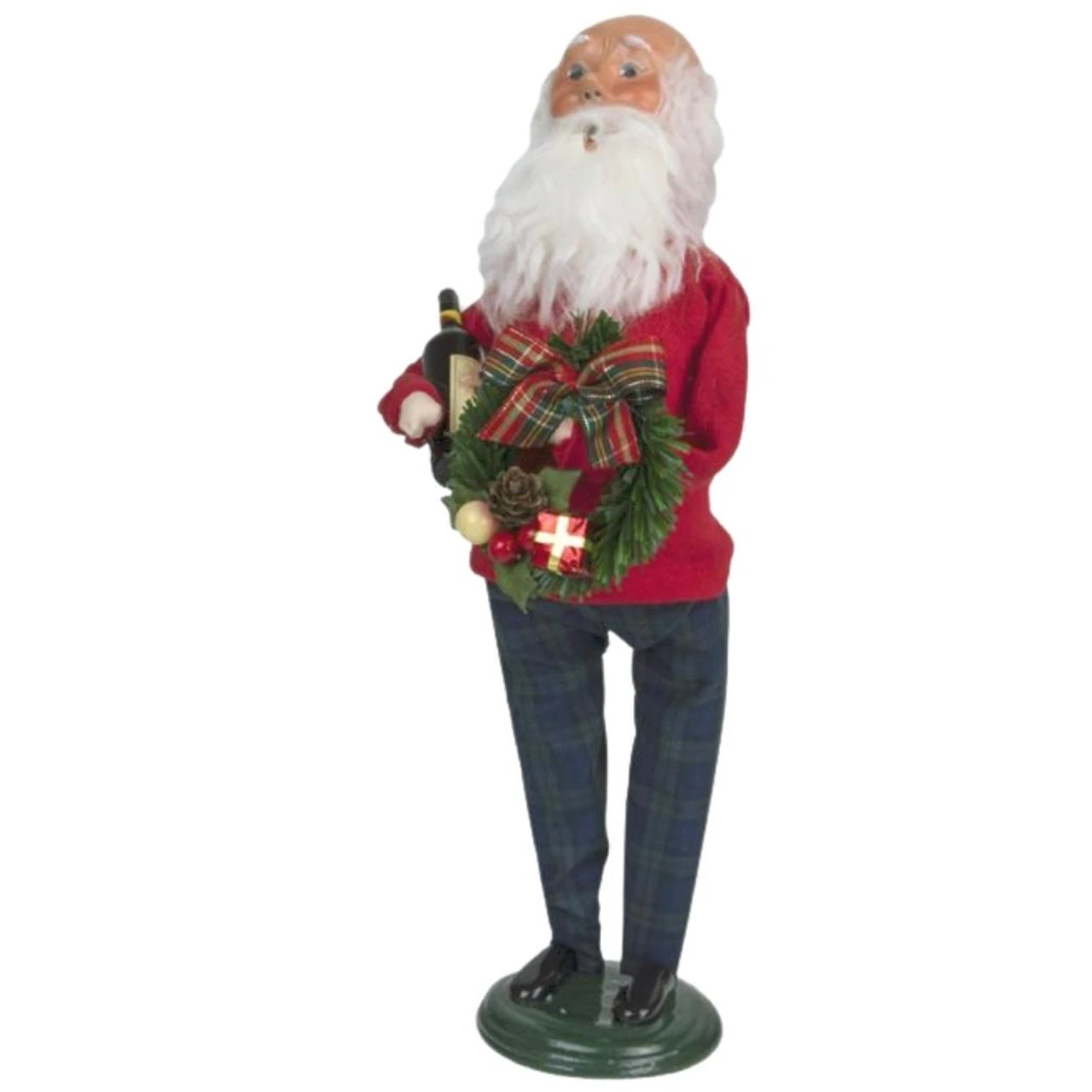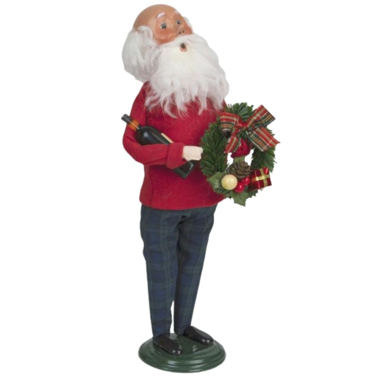 Raise a toast to the holiday season with the Byers’ Choice Wine Santa Caroler. This characterful, 13-inch figurine is resplendent in festive plaid pants and holds a wreath and his favorite bottle of mulled wine. The traditional charm of Santa comes alive with a twist of merriment and celebration. This captivating piece brings warmth and joviality to any Christmas gathering, embodying the heart and soul of the festive season. It’s an exceptional gift for wine enthusiasts, Santa lovers, or anyone who appreciates unique holiday decor.