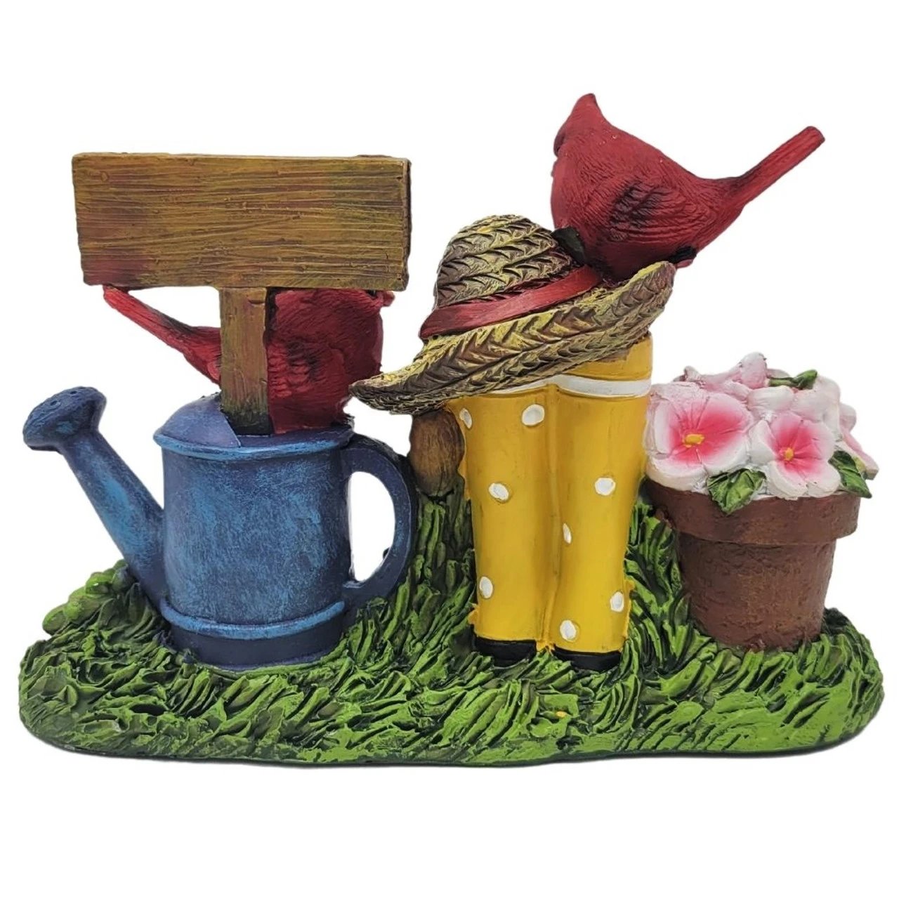 These little cardinals are excited to welcome in Spring and all of the beautiful flowers that comes with it. This adorable piece looks great inside your home or office and can even go outside in the garden or yard!Â