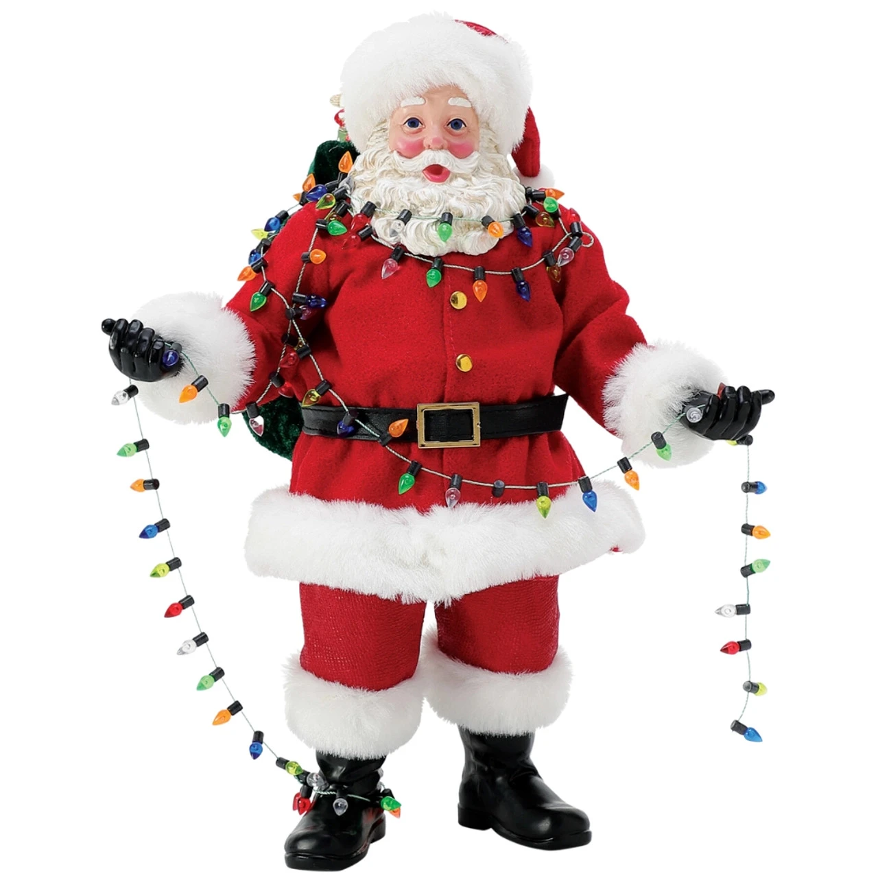 Light up your holiday decor with the Possible Dreams Figurine of Santa holding a string of Christmas lights! Designed by U.S. artist Ann Dezendorf, this charming figurine stands 10.5 inches tall and features Santa holding a string of festive lights with a cheerful smile on his face.