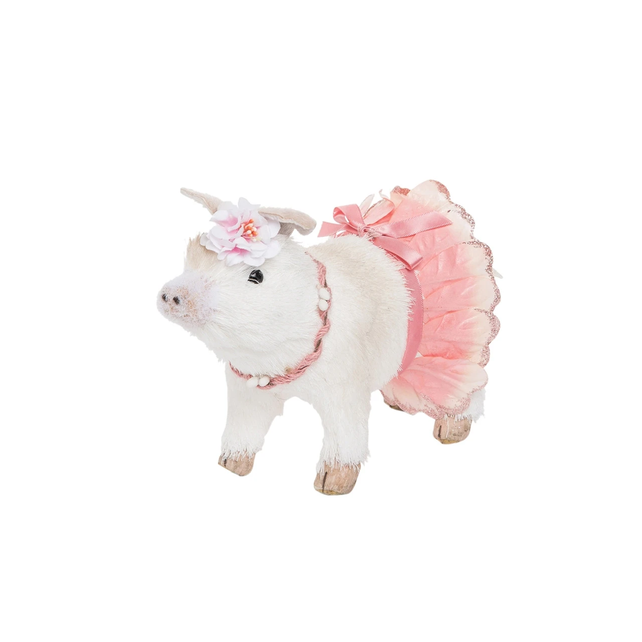 This adorable pig figurine is ready for Spring and the Easter holiday. Dressed in bunny ears, flowers and a pink tutu. Measures approximately 7.5″ x 4.5″ x 6″