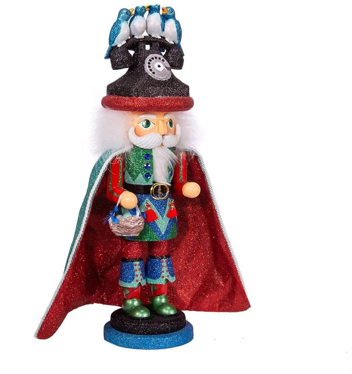 Hollywood™ Nutcrackers is a whimsical collection of nutcrackers created exclusively for Kurt S. Adler, Inc. and features an assortment of designs that put a unique, vibrant, memorable twist on traditional nutcrackers. This 17.5-inch Four Calling Birds Nutcracker features four calling birds atop a glittered telephone hat. In his hand is a nest with eggs. This nutcracker is a stunning addition to any holiday décor.