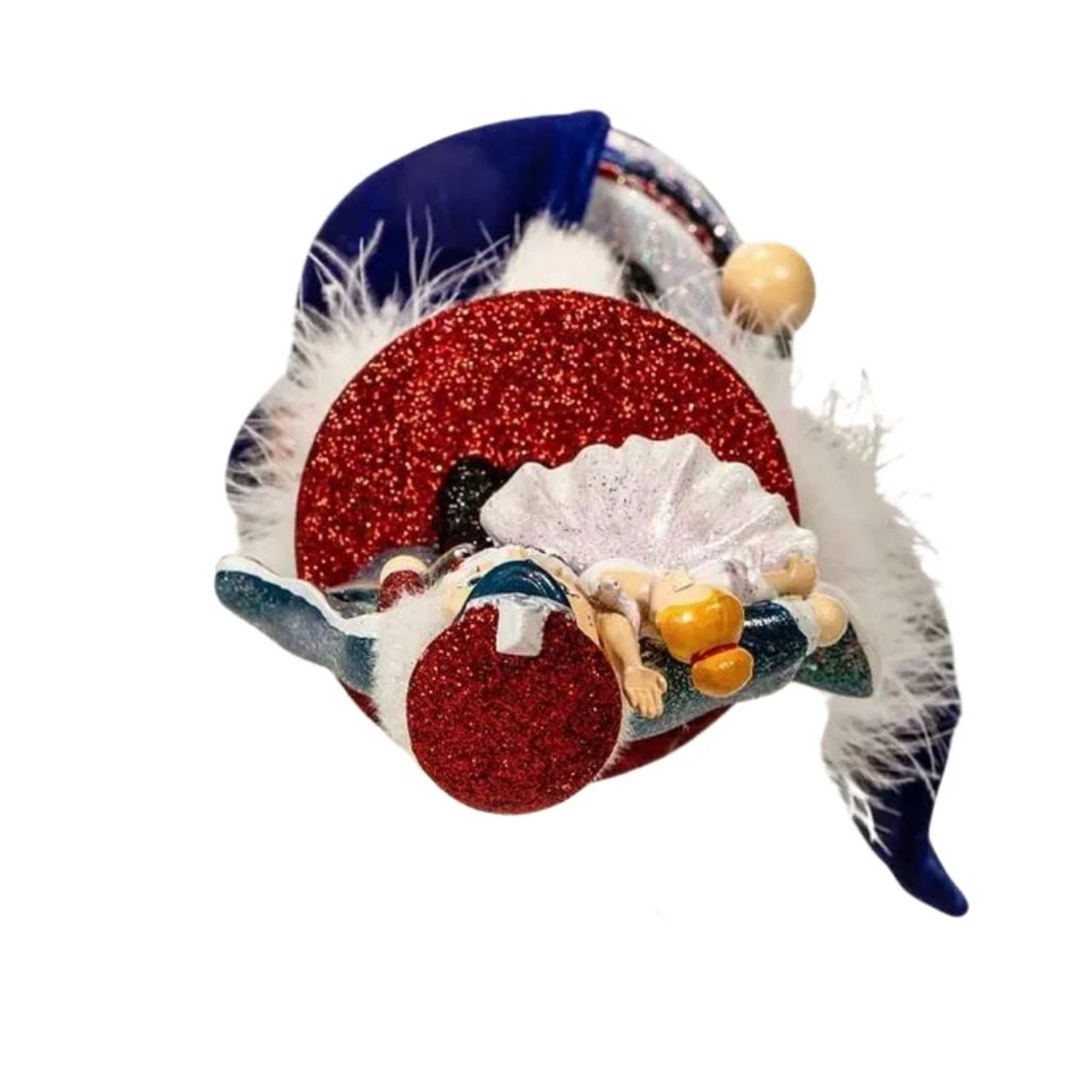 Designed by renowned artist Holly Adler, Hollywood Nutcrackers™ is a whimsical collection of nutcrackers created exclusively for Kurt S. Adler, Inc., and features an assortment of designs including Christmas, fantasy, and everyday nutcrackers. This nutcracker features a hat topped the star of The Nutcracker Suite, Ballerina alongside The Prince, Like the story’s character, she is standing next to The Prince, which is wearing a sparkling red, white and black uniform with a blue glittered cape and his sword. The nutcracker is wearing a matching glittered red and blue outfit with a blue velvet cape and is standing on a blue and silver glittered checkerboard base with blue and red gemstones.