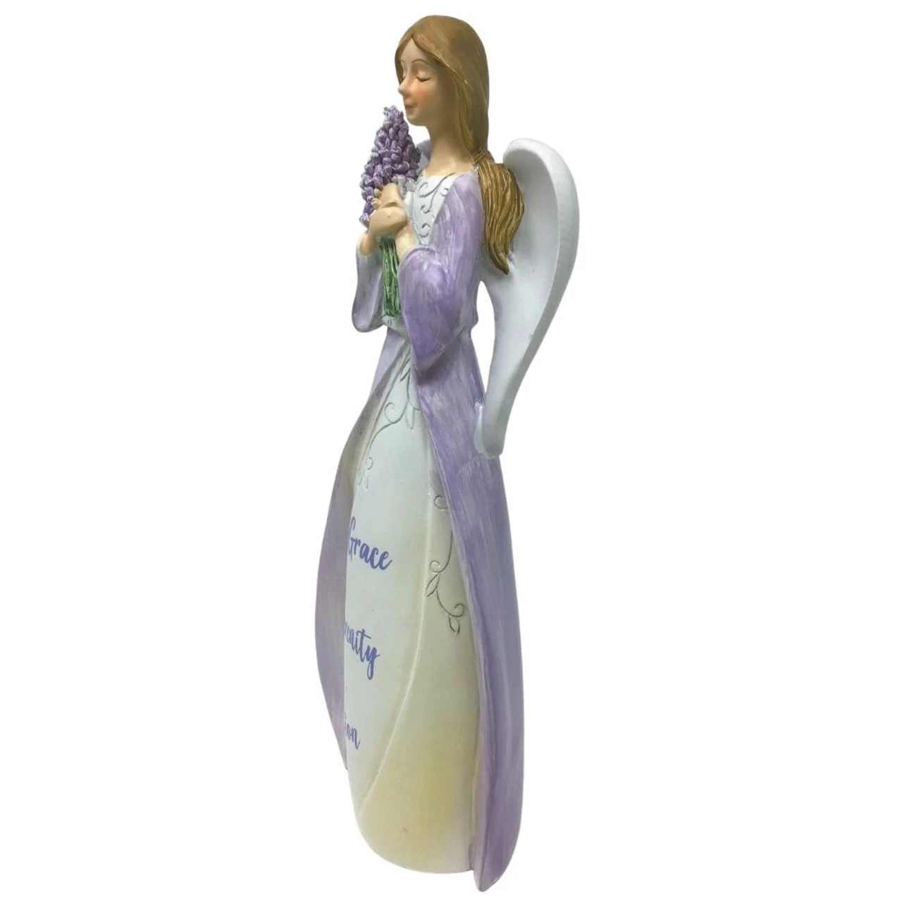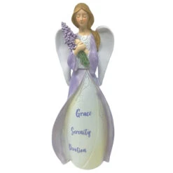 This beautiful cream and lavender angel will make a fantastic addition to your home. She is holding a bunch of lavender and has the words Grace, Serenity, and Devotion on her dress.