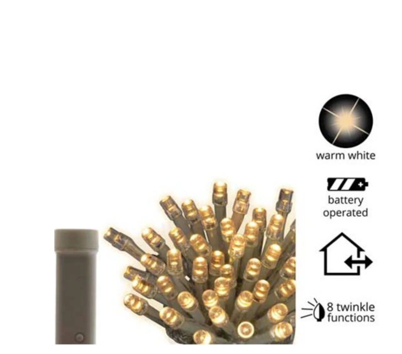 - 96 Warm White LED Light. Warm colors that resemble traditional mini lights