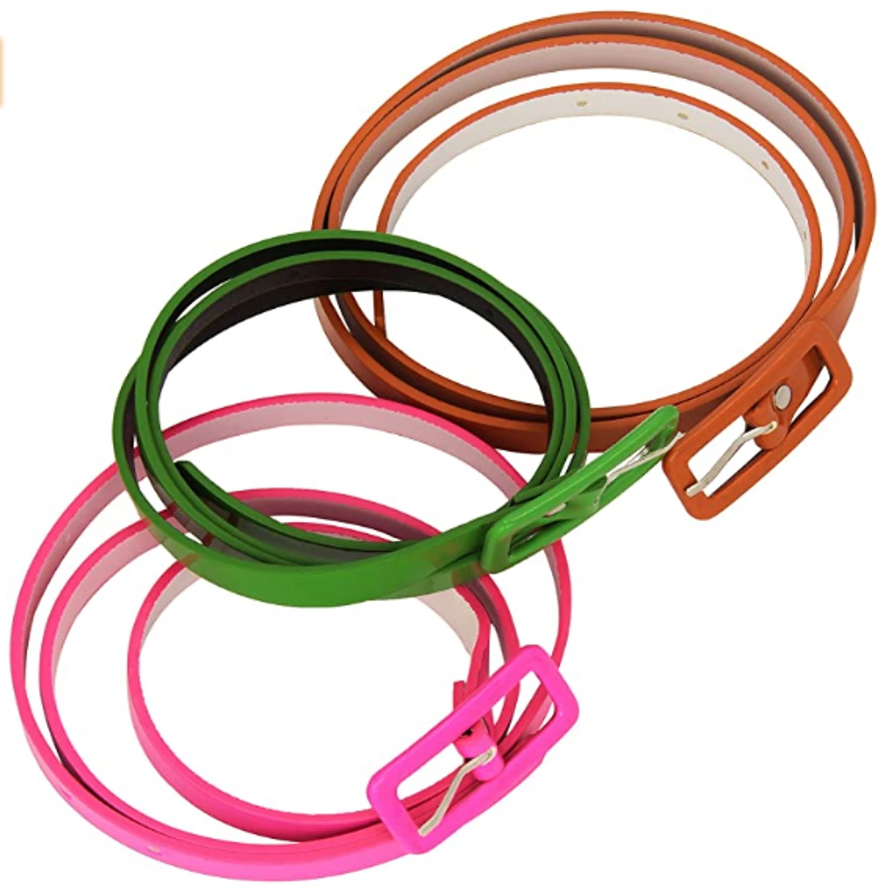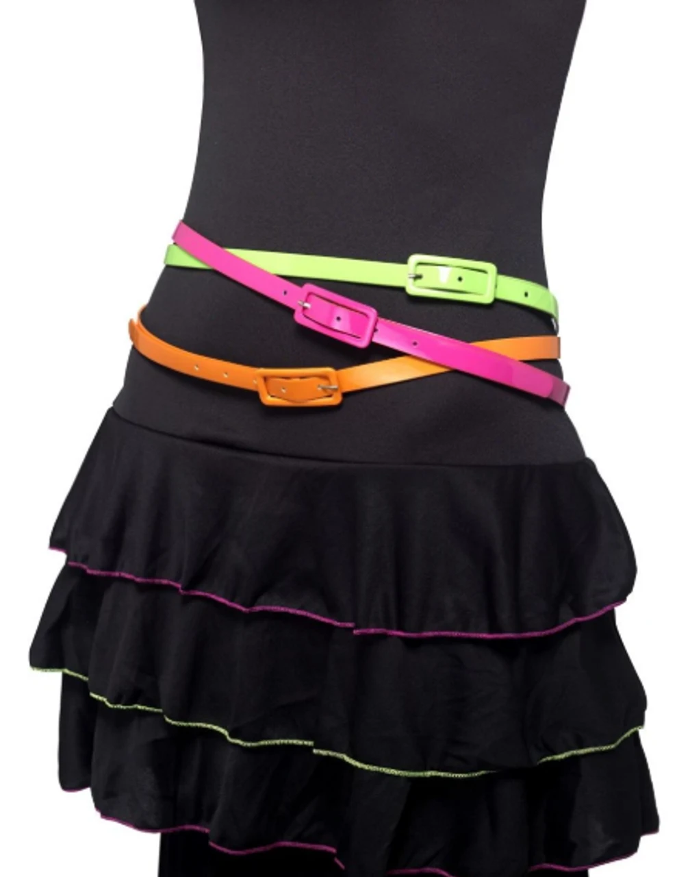 Get ready to throw it back to the neon bright 80’s! Complete any dance, 80’s or Rave look with these (3) neon colored belts. Can be used as shown or as actual belts. This pack contains three different coloured belts. Colors may vary slightly.
