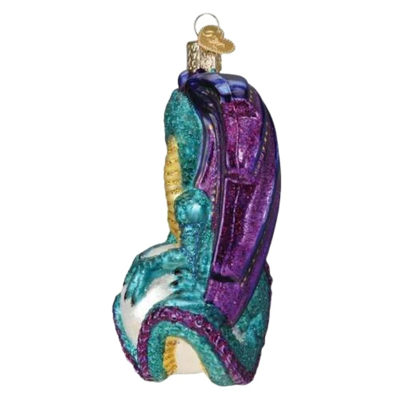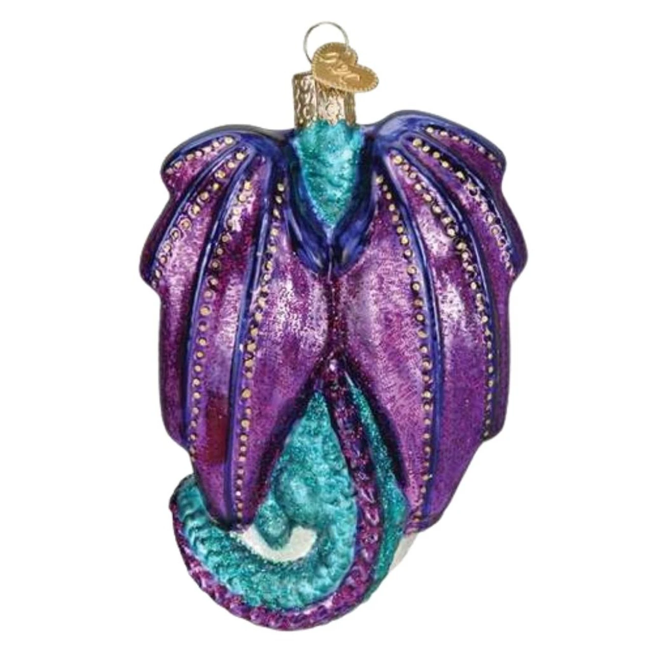 All sides are nicely detailed. It is made of blown glass, delicately hand-painted, and has sparkling glittered accents.
