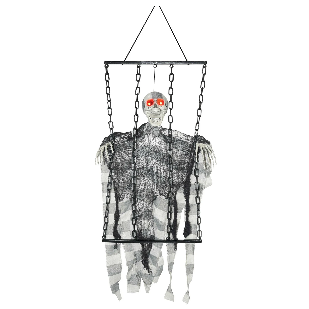 This sound activated caged slashing prisoner from The Gothic Collection is sure to scare any trick or treaters this year. With posable slashing arms, light up eyes, and spooky sounds he is a perfect addition to your Halloween decor