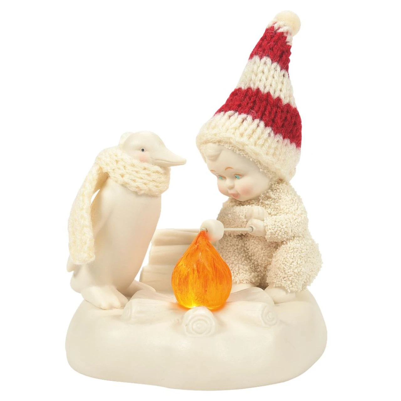 Come cozy up by the fire with this Snowbaby and her penguin friend. They’re bring the marshmallows for roasting!
