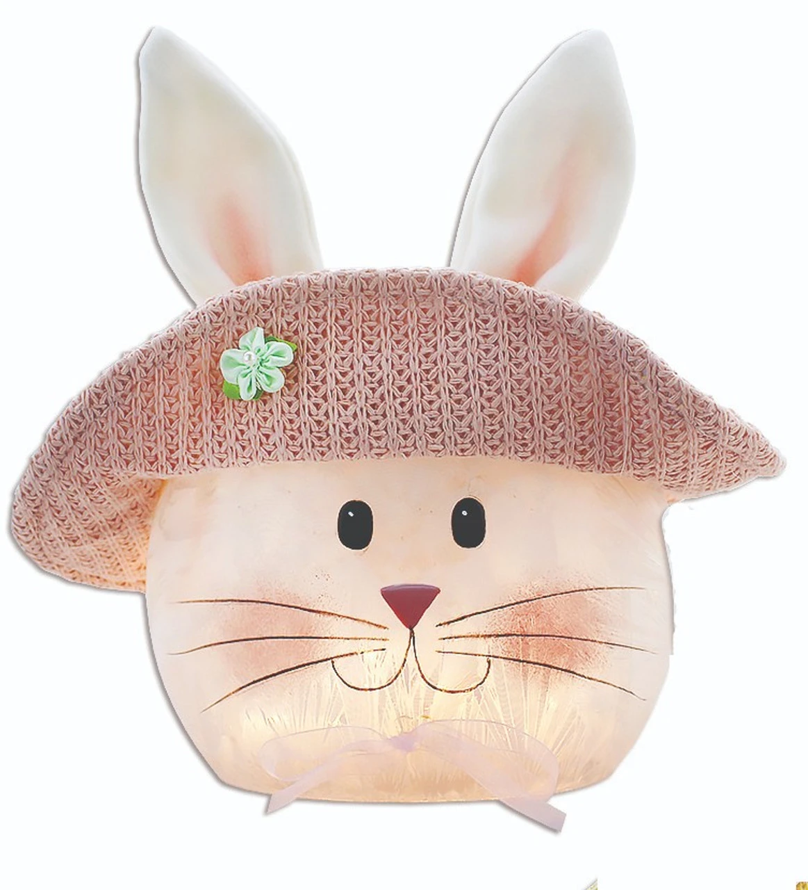 Illuminate your home with this beautiful hand-painted decorative light featuring a colorfully painted rabbit with a pink fabric cap and bunny ears on top. Gift friends or family with this round light to help brighten up their homes. Or, display it in your own home and enjoy its warm glow.