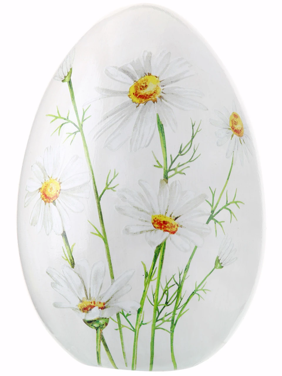 Decorative Eggs are a very important cultural item of Easter. Early Christians from Mesopotamia would paint eggs red in memory of the crucifixion of Christ. Over the years they have been updated to mirror current society. This Terracotta Daisy Egg is beautifully made. They can be put on tables, shelves, window sills, over a fireplace or in the hearth of an unlit fire.